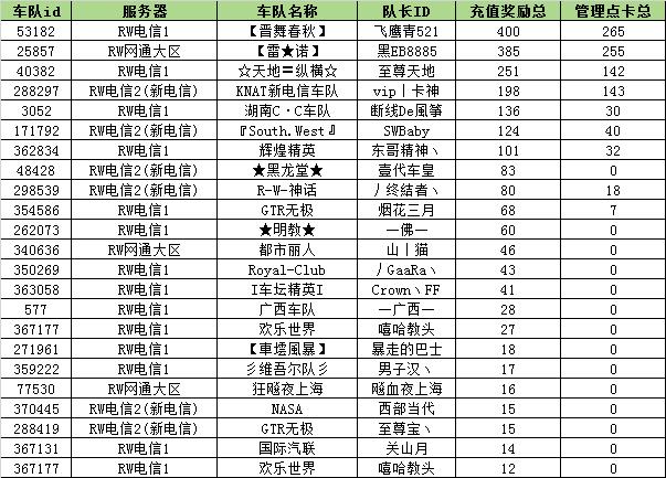 您的车队是否已经在这份激动人心的榜单中登场了呢?下月,这份喜悦是否同样属于您呢?希望大家能够更好的组织好车队的活动,获得我们更多的奖励!