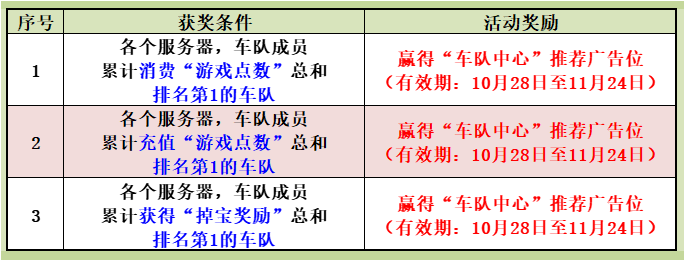 2. 本活动每组服务器共有3个获奖名额,单支车队最多仅可占据1个获奖名额;