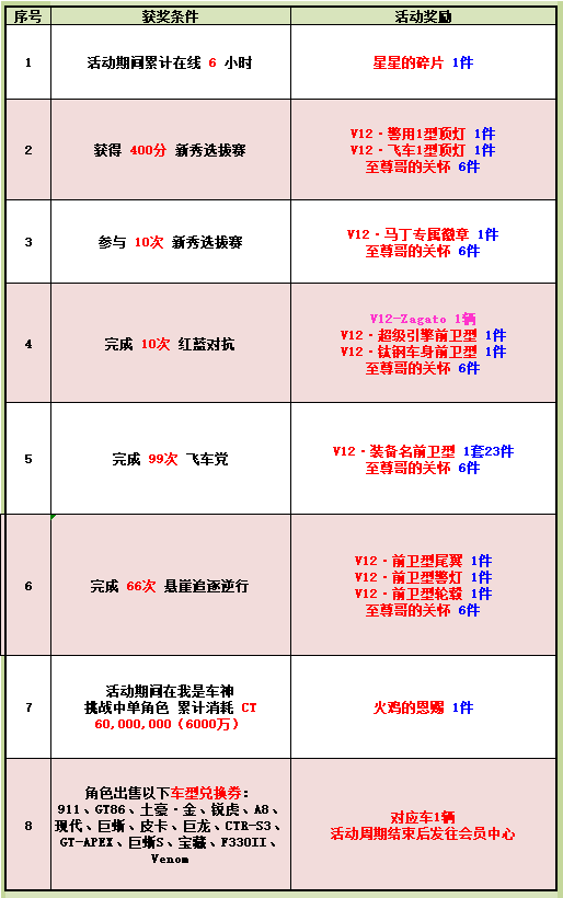 9. 序号8活动,角色出售指定车型兑换券,活动结束后,指定车辆会发往会员中心;