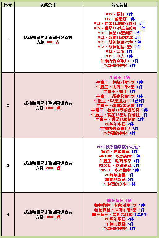 2. 活动1-4统计为累计充值,限定网银直充途径;