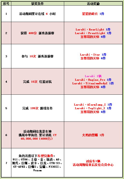 9. 序号7活动,角色出售指定车型兑换券,活动结束后,指定车辆会发往会员中心;