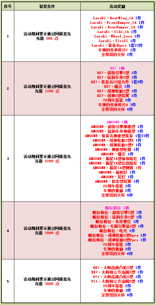 1. 序号1至5活动奖励由系统即时颁发,请在完成相应任务后于游戏中领取;