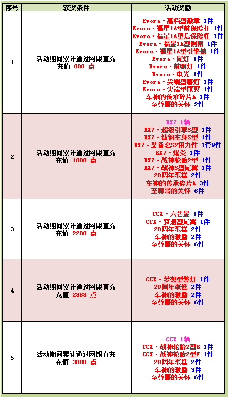 2. 活动1-5统计为累计充值,限定网银直充途径;