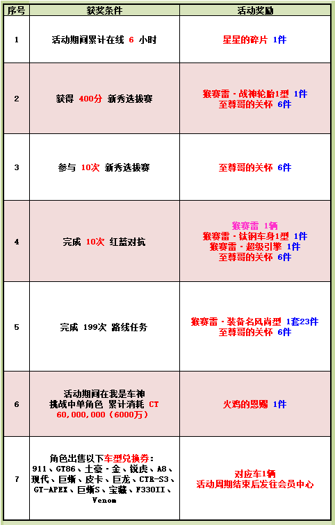 9. 序号8活动,角色出售指定车型兑换券,活动结束后,指定车辆会发往会员中心;