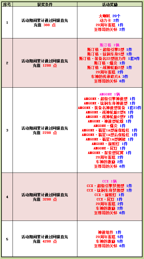 1. 序号1至5活动奖励由系统即时颁发,请在完成相应任务后于游戏中领取;
