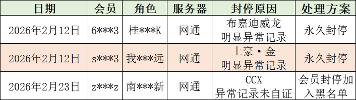 飚车世界近期封停公示