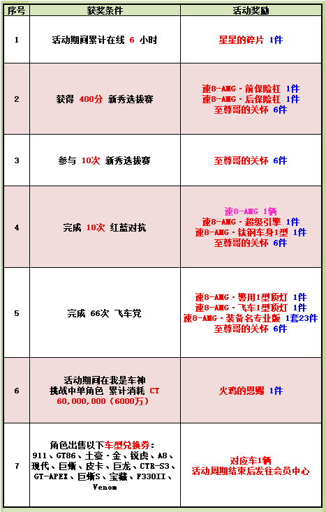 9. 序号7活动,角色出售指定车型兑换券,活动结束后,指定车辆会发往会员中心;