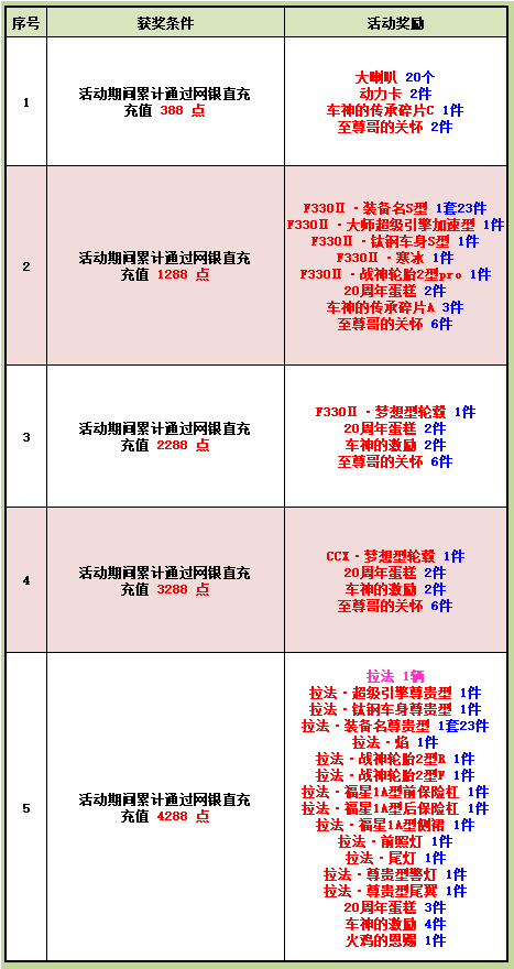 1. 序号1至5活动奖励由系统即时颁发,请在完成相应任务后于游戏中领取;
