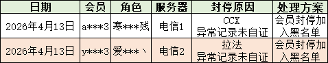 飚车世界近期封停公示