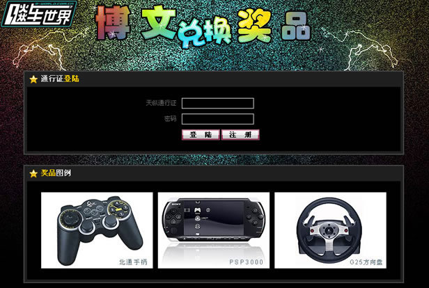 当你写完相关博客后,请立刻登录我们的活动页面填写你的天纵通行证,之后只需要填入你博客地址就可以完事OK了。如果同时填写你的QQ还有机会获得PSP3000、G25或北通手柄。待到我们活动时间结束后,我们将审核所有的博客并集中发放我们这次的奖品30点黄金点。利用这30点黄金点,玩家可以在我们开放“黄金转转”活动时使用,届时您将可以获得游戏中的极品装备。