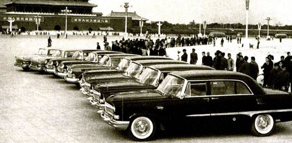 1959年9月,二十辆红旗轿车送往北京,供国庆十周年阅兵式用。