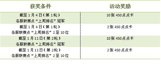 活动内容:在活动期间,任意玩家可通过参与任意形式的锦标赛比赛赢得若干联赛点。截至活动结束,如您的总联赛点累计大于等于500即可赢得活动奖励;