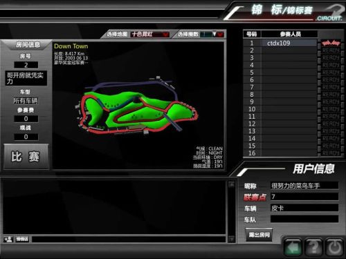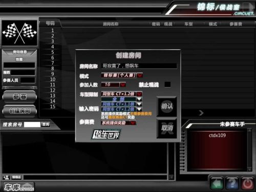 - 比赛大厅中可以查看现有的比赛房间或建立新的比赛房间。在传统的方法中,首先选择想要加入的比赛,此时画面的左侧将看到一些比赛的细节信息。若决定加入,则需点击“参赛”按钮;