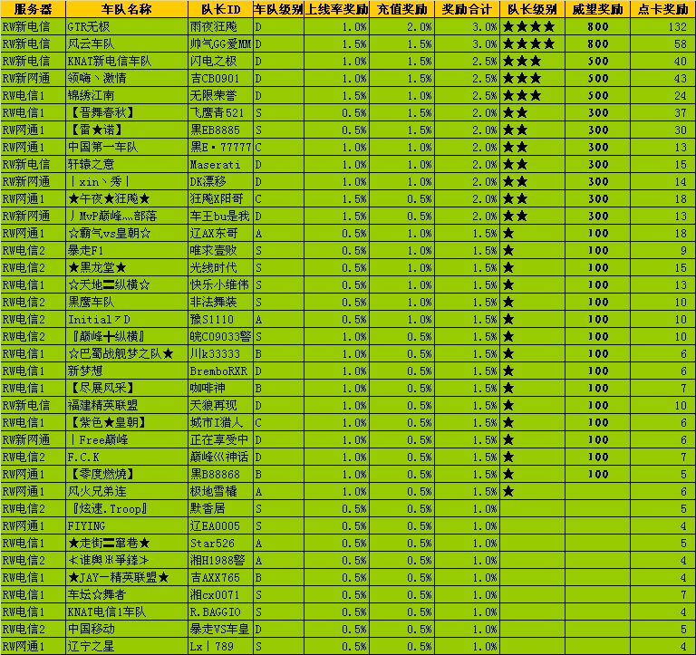 您的车队是否已经在这份激动人心的榜单中登场了呢?下月,这份喜悦是否同样属于您呢?希望大家能够更好的组织好车队的活动,获得我们更多的奖励!