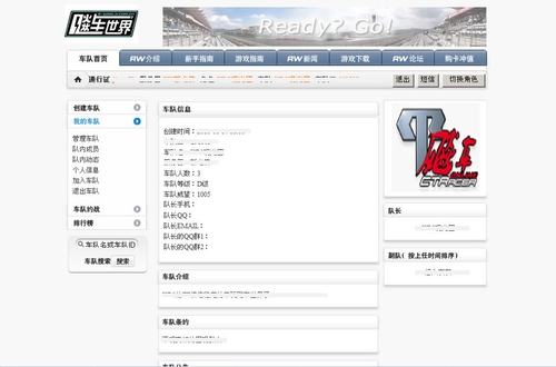 首先,请车队队长登录《飚车世界》车队中心页面。