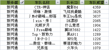 参与对象:依据以下公布的各服车队威望榜单前10车队(数据截至4月31日);