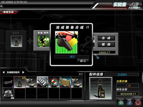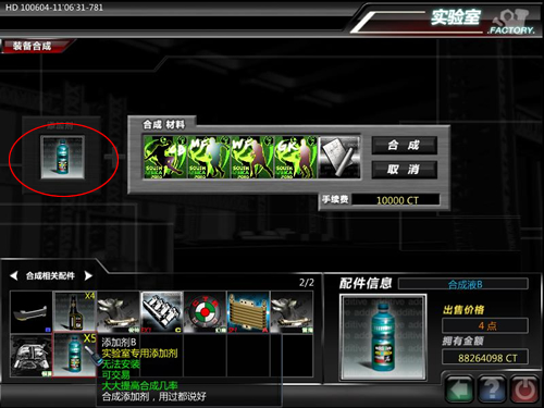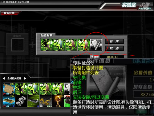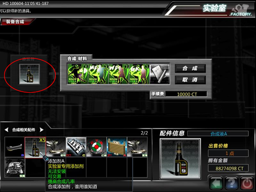 如上图,一次装备合成结束。图中红圈所示即是该次合成获得的配件。