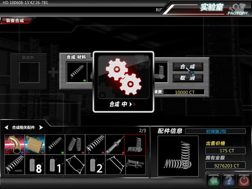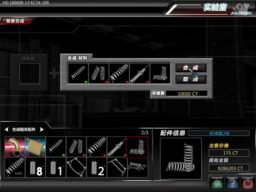 如上图,可以看到刚刚获得的配件可以立即作为原料配件再次进行合成。直到您获得令您满意的配件为止。