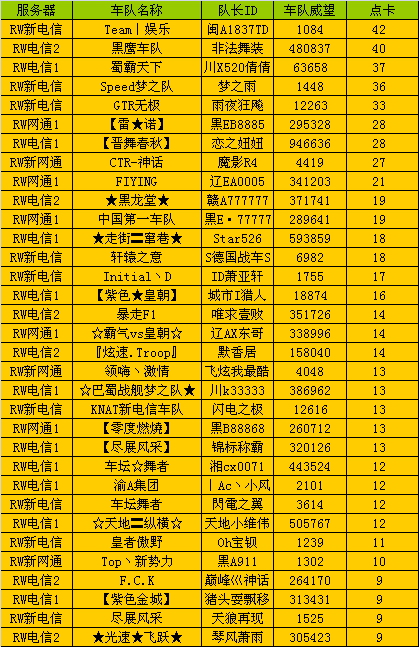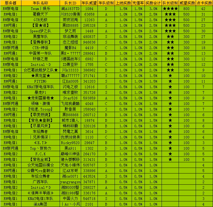 您的车队是否已经在这份激动人心的榜单中登场了呢?下月,这份喜悦是否同样属于您呢?希望大家能够更好的组织好车队的活动,获得我们更多的奖励!