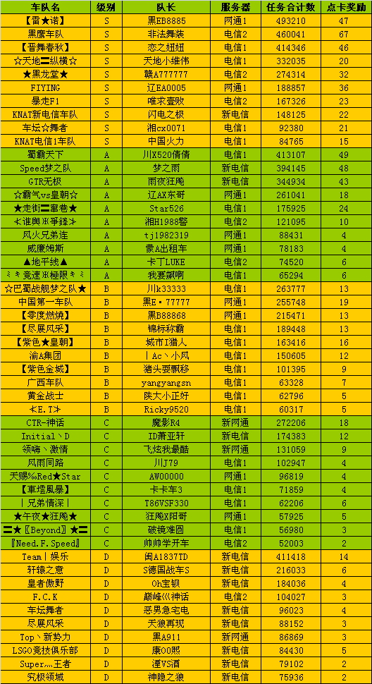 1. 点卡奖励仿照车队月奖励常规榜单规则:队长50%,2名副队各25%发放;