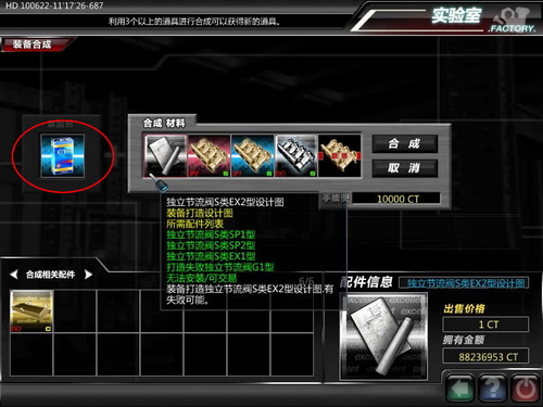 注意:使用“图纸”并按照其配方合成仍有一定几率获得非图纸指定道具。每张“图纸”仅可使用1次。使用“添加剂C”型合成液并配合“图纸”,可以100%获得图纸所标识的指定配件。