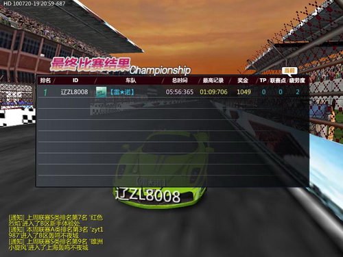 7月20日19时20分,网通赛区【雷★诺】车队“辽ZL8008”抢先出击:
