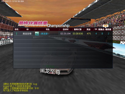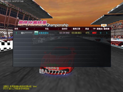7月21日14时07分,电信2赛区★黑龙堂★车队“赣A777777”再度巩固战果: