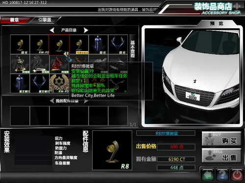 想必看到这些,您已然对它垂涎欲滴。这还不止哦 ―― 这款看起来小小的徽章更加拥有一项特别的专属功能:当您身处《飚车世界》任意一座城市地图时,它将为您的爱车赋予一项名为“出租车”的特殊属性。拥有这项属性,当您接受城市路线任务并成功完成后,即可赢得由系统专门颁发的额外任务奖金!