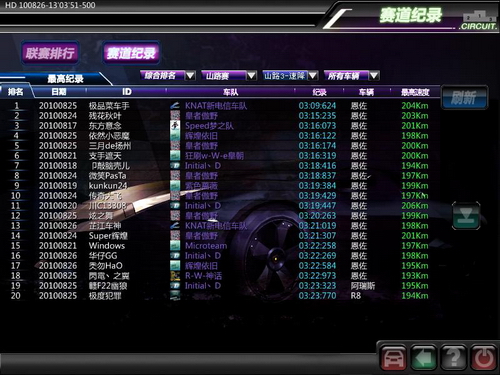 下面请随着笔者的视角,窥视一番《飚车世界》5大赛区之一“新电信”赛区一角,看看喜爱山路的玩家们创造的最新记录吧!