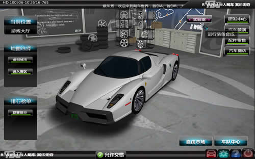 如图1:登录《飚车世界》后,进入“游戏大厅”您即可在右上角的“研发中心”菜单中找到“实验室”入口。