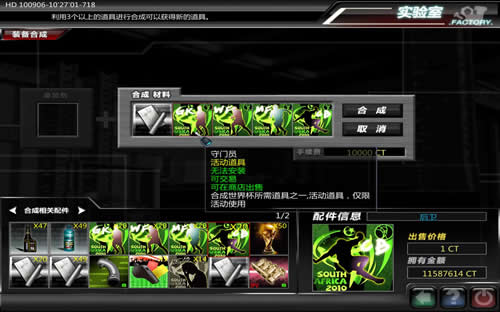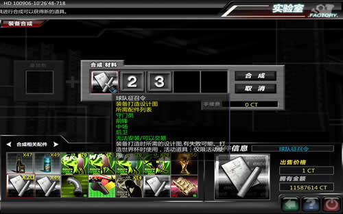 如图2:选择一张您所拥有的道具图纸。双击它可将之放置在“合成材料”窗口第1栏内。每张道具图纸都会详细的说明其配方中“所需配件列表”,您必须按照图纸所示收集到相应的道具。