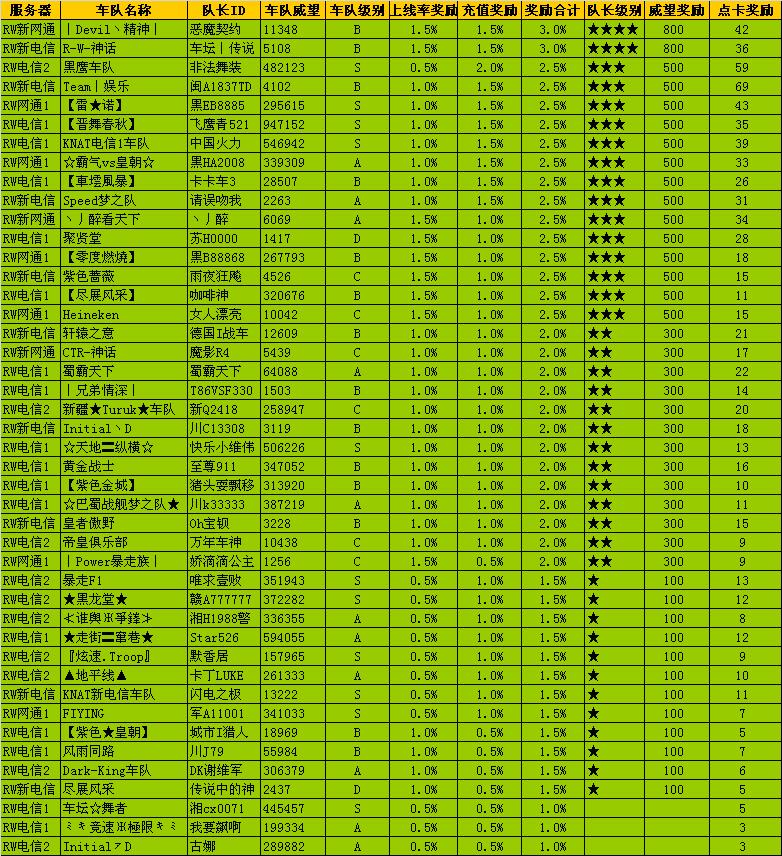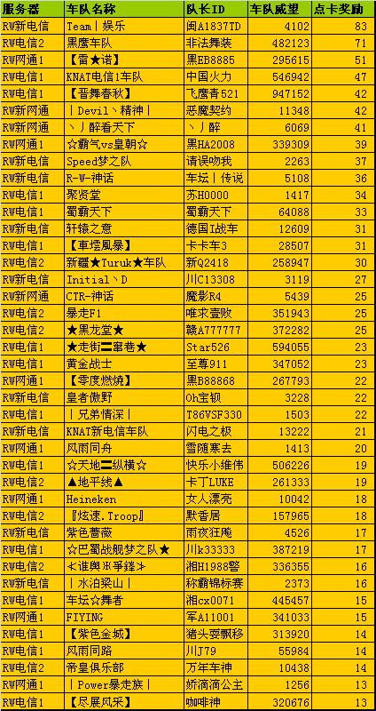 您的车队是否已经在这份激动人心的榜单中登场了呢?下月,这份喜悦是否同样属于您呢?希望大家能够更好的组织好车队的活动,获得我们更多的奖励!