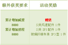 活动内容:活动期间,同一通行证帐号下单个游戏角色内,购买全新“UC2”系列驾驶性能件满 8 件者(允许任意组合,单件重复亦可),并满足以下“额外获奖要求”,即可赢得相应的丰厚超值奖励!