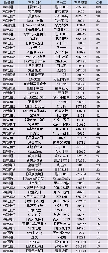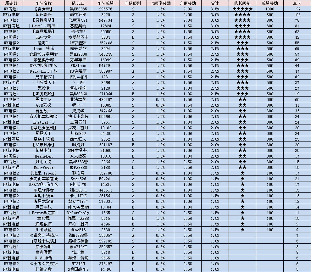 您的车队是否已经在这份激动人心的榜单中登场了呢?下月,这份喜悦是否同样属于您呢?希望大家能够更好的组织好车队的活动,获得我们更多的奖励!