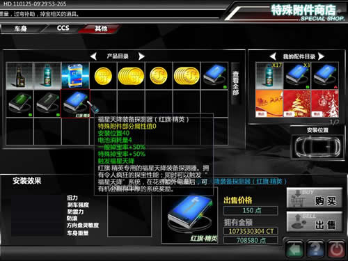 如图1:想要参与这项奖励活动系统,您首先需要拥有一个适合您爱车的“福星天降”装备探测器。它们可以在游戏中“配件零售”-“特殊附件”商店中购买到。