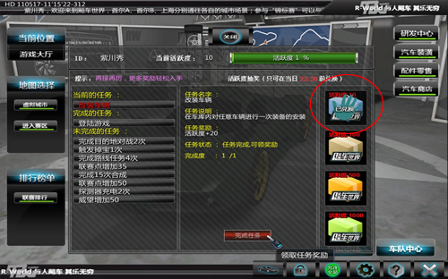 如图1所示,我们可以看到左侧随机得到的10个新“日常任务”,它们涵盖了从基本的登录游戏、改装车辆操作,到略具挑战的目的地对战、路线任务竞技,再逐渐深入到联赛点、掉宝奖励等中高级游戏内容。
