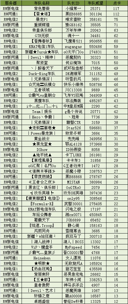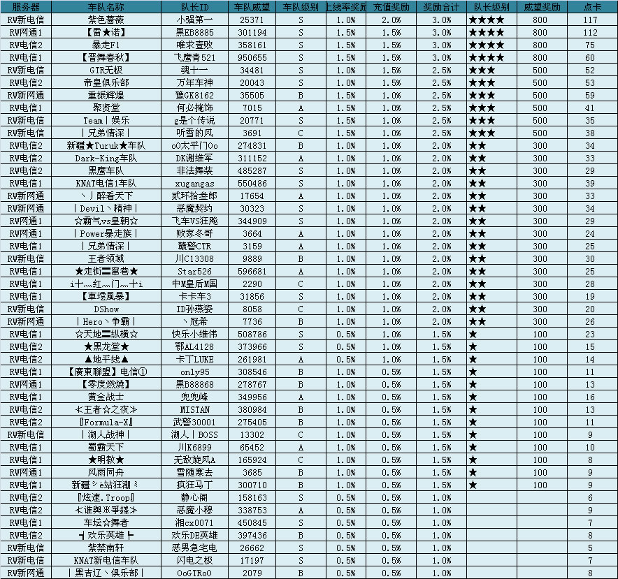 您的车队是否已经在这份激动人心的榜单中登场了呢?下月,这份喜悦是否同样属于您呢?希望大家能够更好的组织好车队的活动,获得我们更多的奖励!