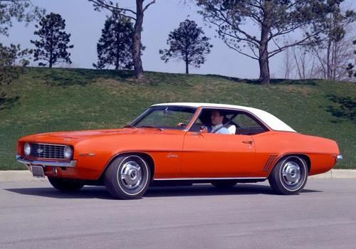 设计于1960年的第一代Camaro,代表着那个时代的乐观主义。使得Camaro成为美国标志的是其超过百万的销量。1966年9月26日发布的1967年款的Camaro是以雪佛兰Nova为原型而设计的。Camaro的基础设计是从风挡玻璃到后防火墙采用了单片式车身架构,以一个单独的钢管副车架来支撑所有车前部的部件。双摆臂组成了前独立悬挂系统,而固定的后轴则被半椭圆的钢板弹簧悬挂起来。作为现代汽车标准配置的典型,它的刹车是通过四个刹车鼓。雪佛兰厚重的230立方英寸直六引擎正常运转的时候,可以通过三速手动变速箱产生140匹马力。售价2,466美元的67年款Camaro双门运动跑车体型修长且具有冲击力,如同敞篷车一样。可以通过选择被命名为RS和SS的单独套件或者组合套件提升外观效