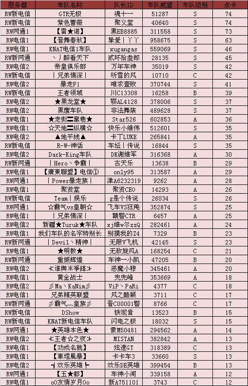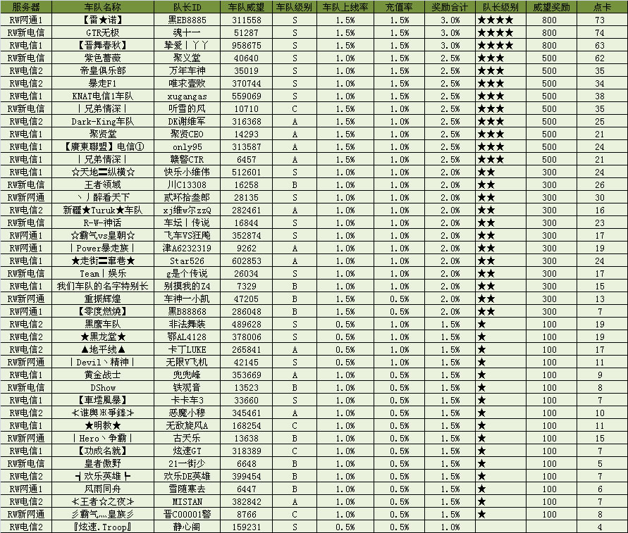 您的车队是否已经在这份激动人心的榜单中登场了呢?下月,这份喜悦是否同样属于您呢?希望大家能够更好的组织好车队的活动,获得我们更多的奖励!