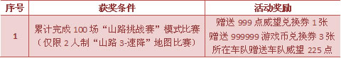 4. 本活动有效统计仅限“山路挑战赛”模式下,“山路3-速降”地图,2人制比赛且最终成功完成的比赛场次;