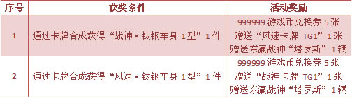 提示:“卡牌合成”指使用成套战神卡牌(TG1)、风速卡牌(TG1)合成