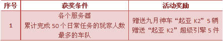 2. 每个服务器,仅限1份活动奖励;且奖励由获奖车队队长负责分配;