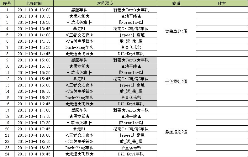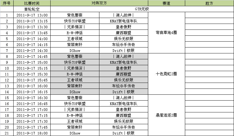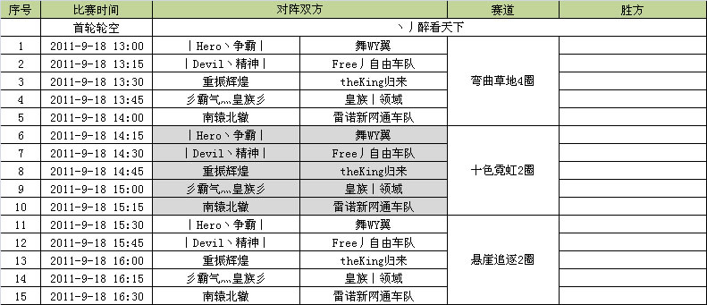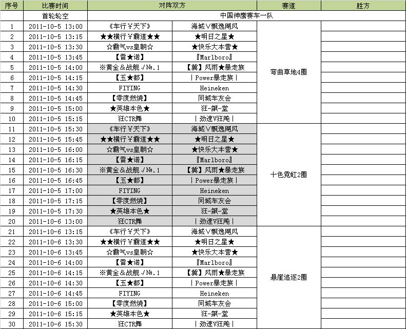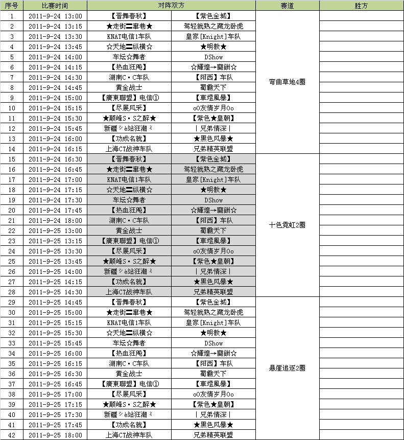 《飚车世界》2011年度“K2之夜”夏秋季联赛 ―― 初赛赛程