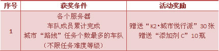 2. 每个服务器,仅限1份活动奖励;且奖励由获奖车队队长负责分配;