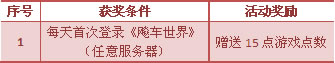 2. 活动期间,每个通行证帐号每天最多获得1份活动奖励;