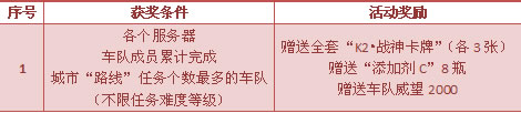 2. 每个服务器,仅限1份活动奖励;且奖励由获奖车队队长负责分配;