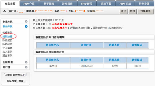 这一切的实现是如此的简单,甚至于每位车队队长只需登录“车队中心”,点击左侧“我的车队”导航菜单中,新出现的“招新扶持”链接,即可一目了然。