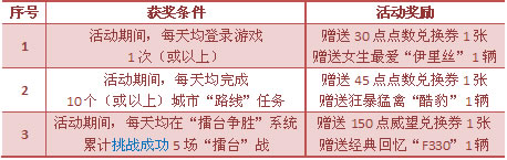2. 每个通行证帐号允许同时对应3项获奖条件,且各获得1份活动奖励;