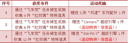 3. 活动涉及的“红玫瑰”道具仅限在活动期间,通过完成“飞车党”任务,赢取掉宝奖励所得;推荐安装探测器并充电,可享受相关道具更高掉率;