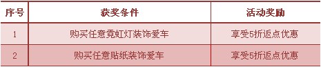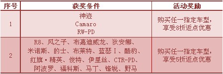 活动内容:活动期间,购买任一指定车型,即可获得相应折扣的返点优惠;